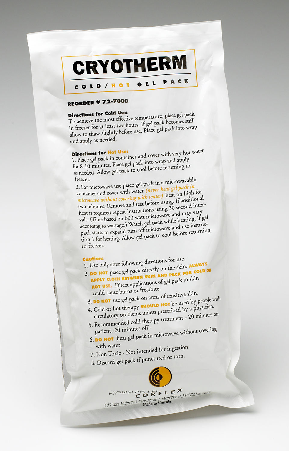 Our Cryotherm Reusable Gel Pack can be used as Hot or Cold Therapy. For Cold Therapy, simply chill in the freezer. For Hot Therapy, heat in hot water or in the microwave.