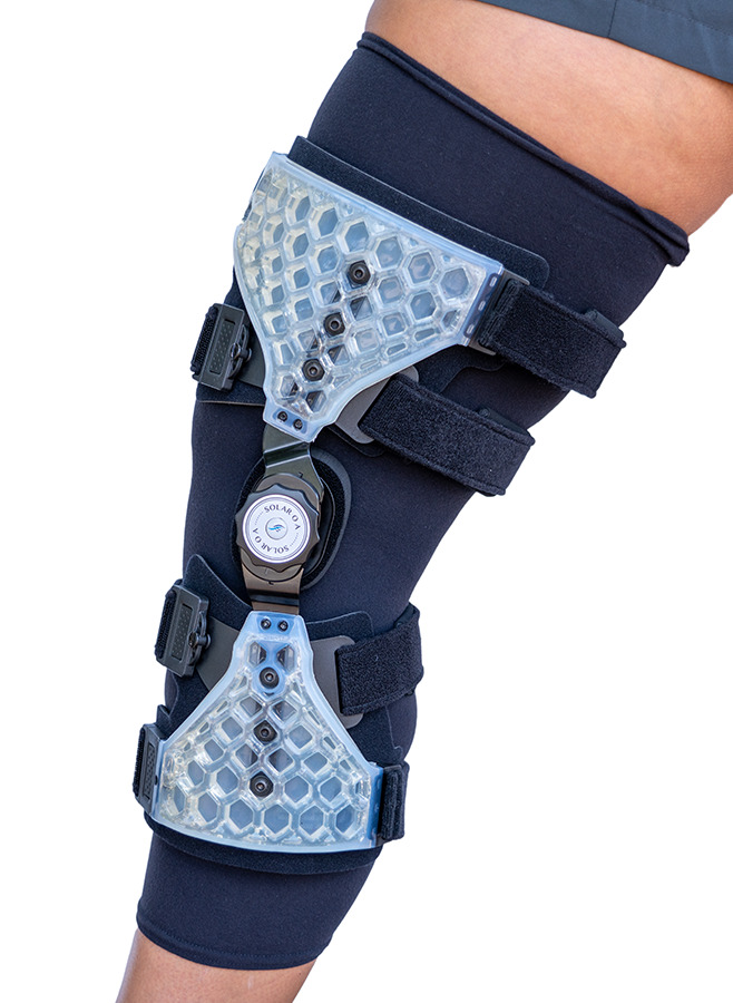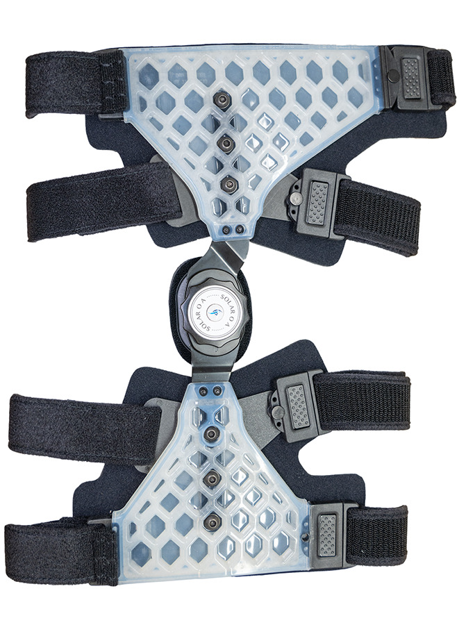 Built with a stainless steel hinge, Solar OA leads the market in weight, durability and stabilization. A low-profile hinge provides a superior fit for the patient while silicone cuffs bonded to malleable high-grade stainless steel offer unmatched lateral molding. Quick-release buckles allow for hassle-free application.