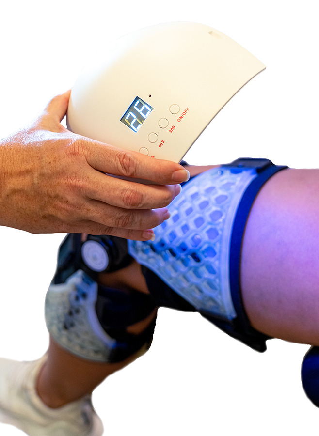 The Solar OA brace is a state-of-the-art solution to the growing demand for custom orthotics. Featuring the SolarTech molding & curing process for near-native zero offloading, a 90-second UV light bath solidifies the brace and ensures custom definition and durability. With a hardness value of D75, once cured and custom-fit, the Solar OA is comparable on the hardness scale to a construction helmet.