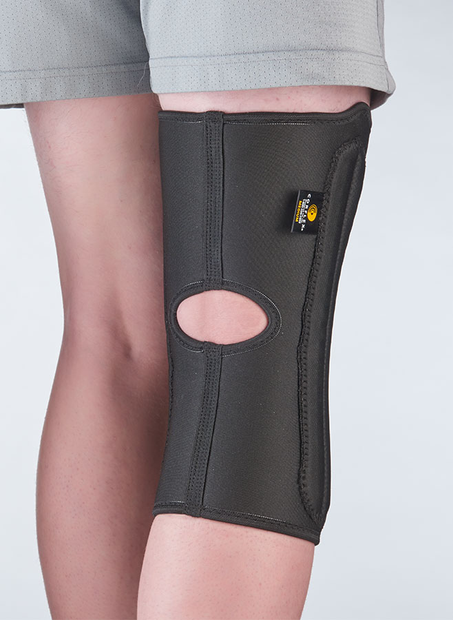 - 13” sleeve provides support and compression for the knee with flex stays to prevent roll-over; open patella aids in tracking.