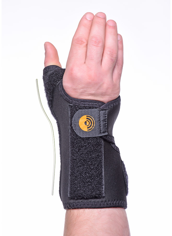 • Constructed of breathable, moisture-wicking nylon spacer material; removable, semi-rigid HPDE and LDPE dorsal stays and thumb spica and ABS palmar stay